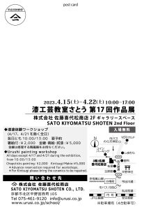 | 会場 | 株式会社佐藤喜代松商店 2F ギャラリースペース 京都市北区平野宮西町105番地電話: 075-461-9120 |